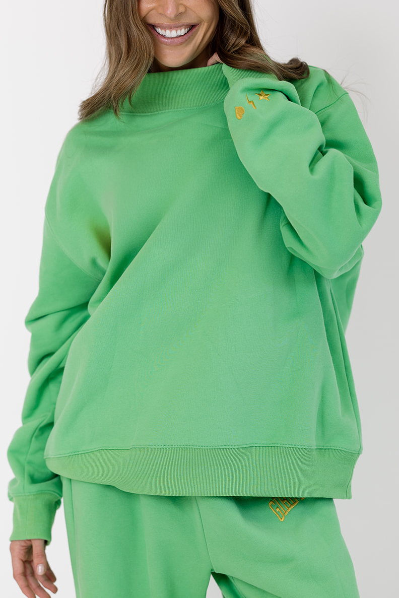 Girl Tribe Embroidered Mock Neck in Spring Green