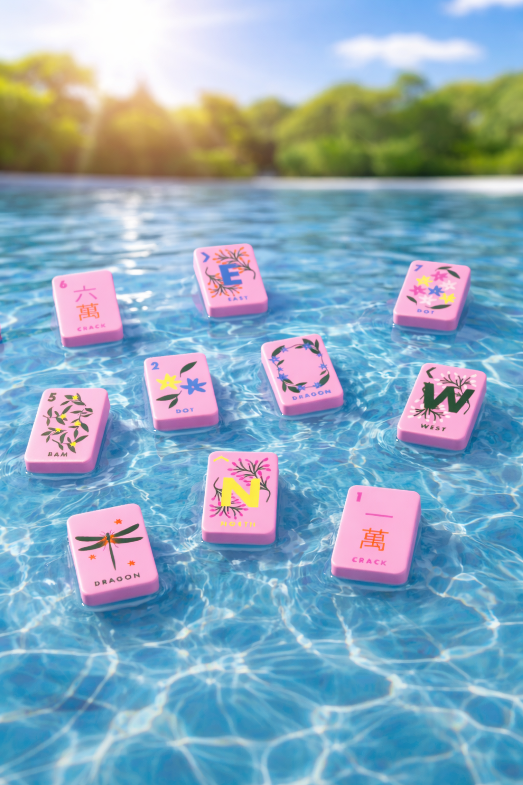 Floating Mahjong Tiles in Floral Pink for the Pool