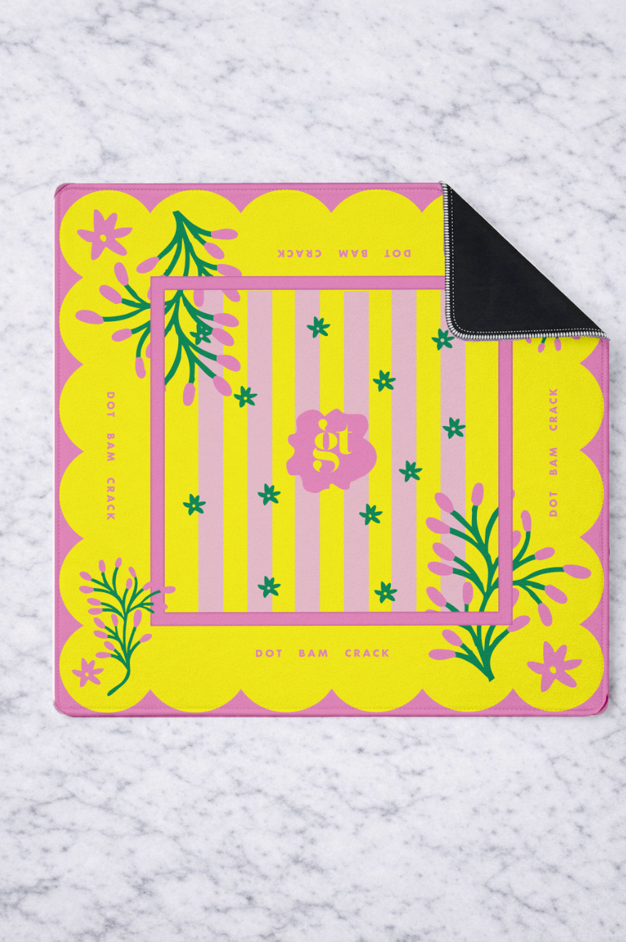 Floating Mahjong Tile Mat in Neon Floral Pink